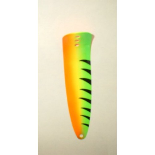 Badger Tackle glow fishing spoons and glow fishing lures have been tested in the field by charter captains on salmon, fresh water and salt water game fish. All fishing spoons come with a VMC extra strong red treble and nickel single hook for every angler preference. Research has shown red hooks catch more fish! Our Fishing lures run well at a wide range of trolling speeds. This magnum size heavy durable lure will handle even the largest of fish. It is recommended to use a cross lock ball bearing snap swivel for all presentations to maximize the action. The Nestor 3/4 ounce weight also works well for casting from boat or shore. Will flat line troll at 2 to 4 feet excellent for first light fishing. It is a proven killer for all game fish!