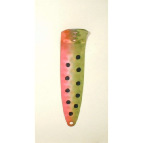 Badger Tackle fishing spoons and fishing lures have been tested in the field by charter captains on salmon, fresh water and salt water game fish. All fishing spoons come with a VMC extra strong red treble and nickel single hook for every angler preference. Research has shown red hooks catch more fish! Our Fishing lures run well at a wide range of trolling speeds. This magnum size heavy durable lure will handle even the largest of fish. It is recommended to use a cross lock ball bearing snap swivel for all presentations to maximize the action. The Nestor 3/4 ounce weight also works well for casting from boat or shore. Will flat line troll at 2 to 4 feet excellent for first light fishing. It is a proven killer for all game fish!